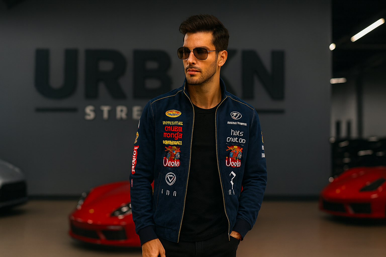 Blue & White Racing Varsity Jacket – Streetwear Motorsport Bomber