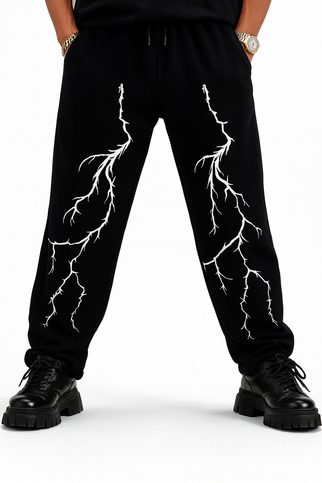 Turn heads with the URBXN Lightning Embroidered Pants – a bold fusion of streetwear and electric energy. Featuring striking white lightning embroidery on deep black fabric, these trousers are built for those who want to stand out.