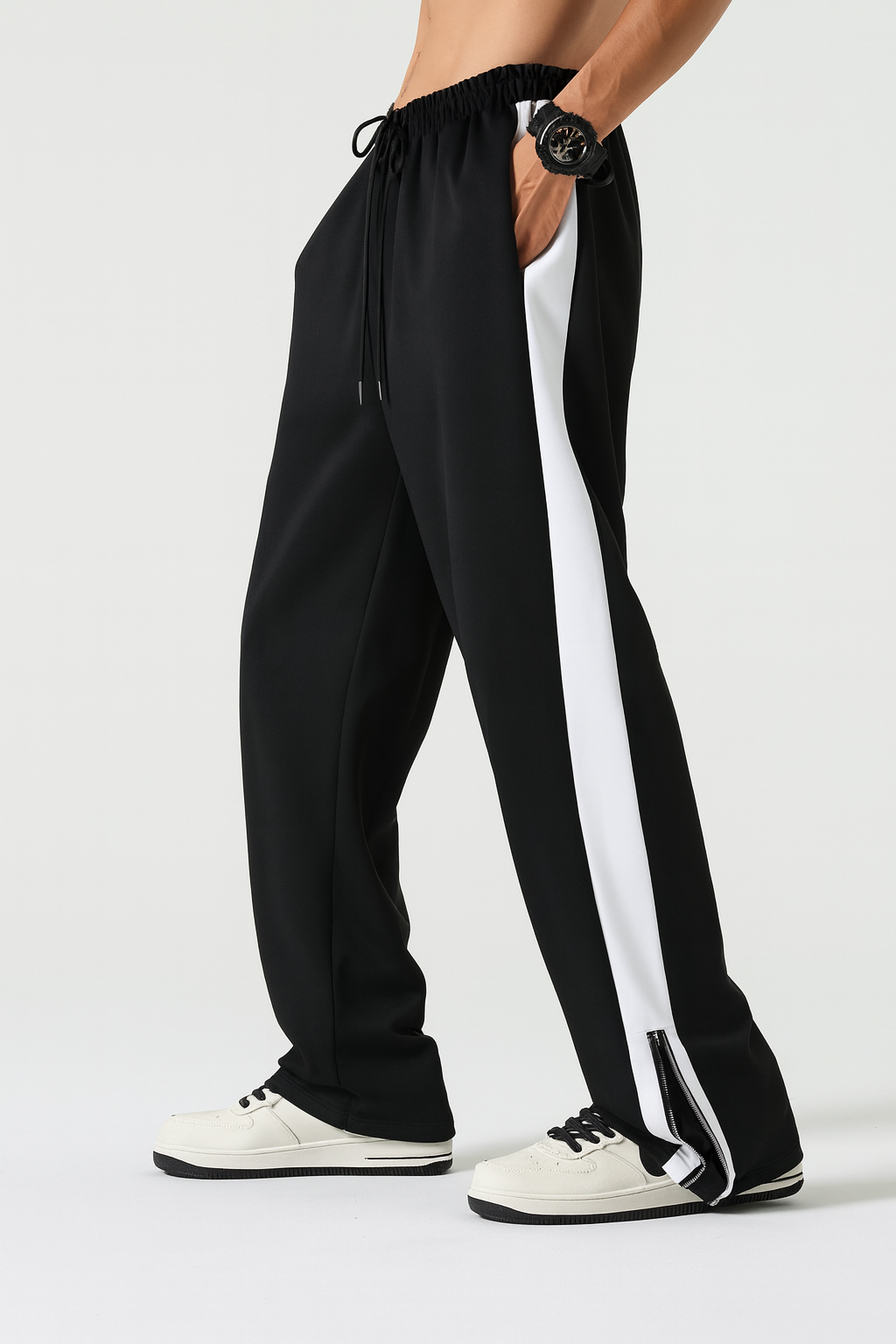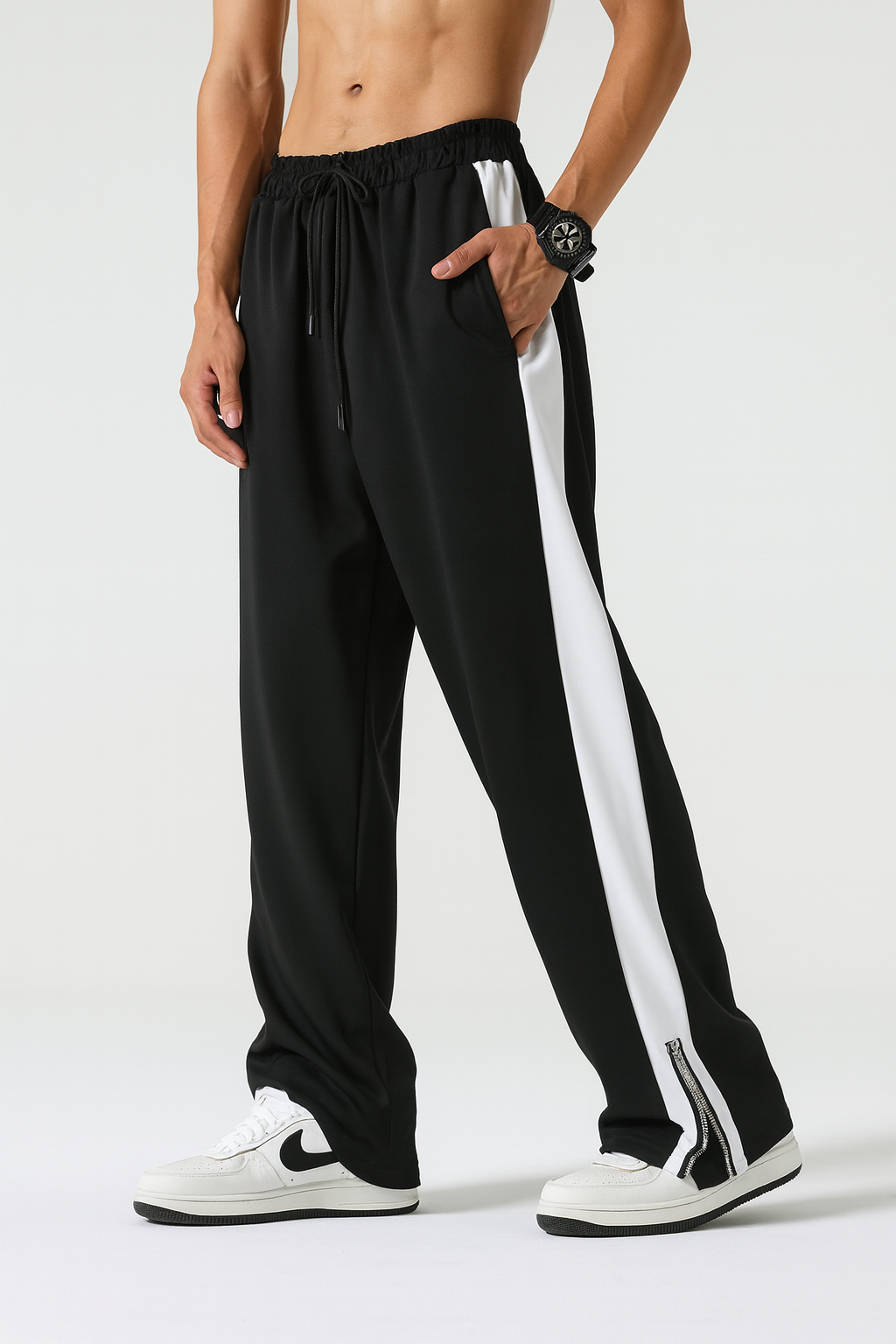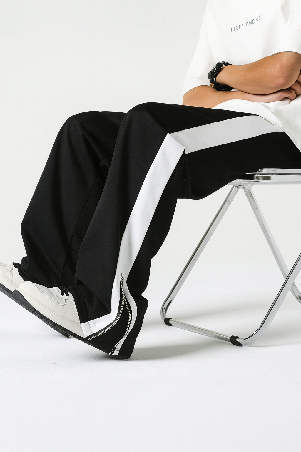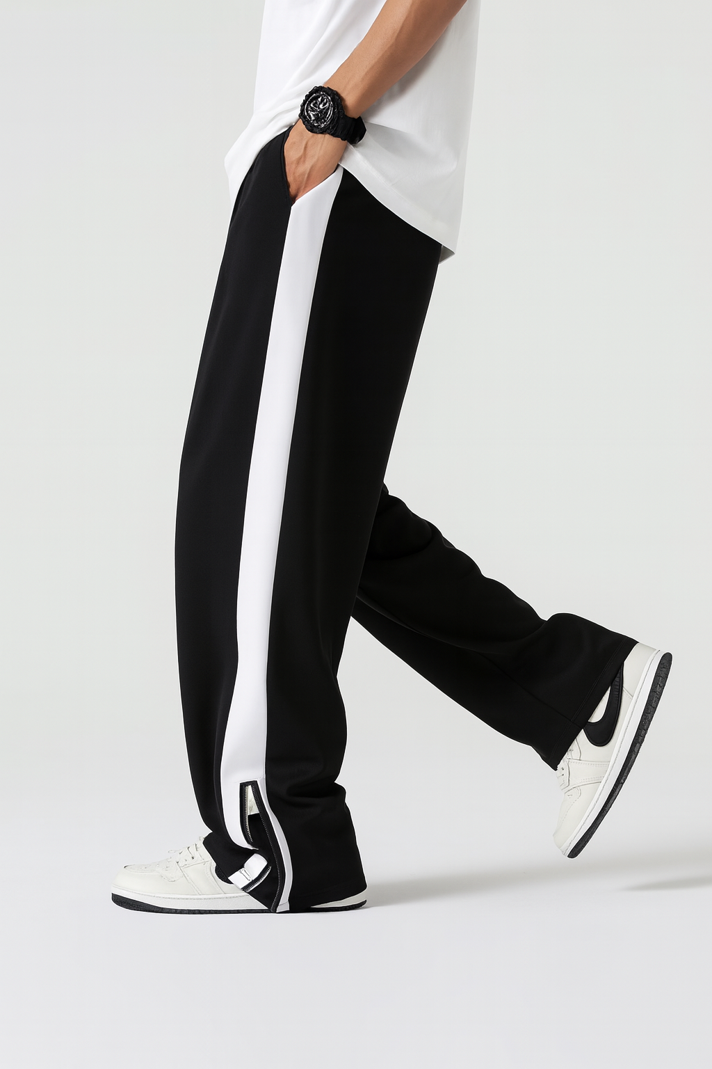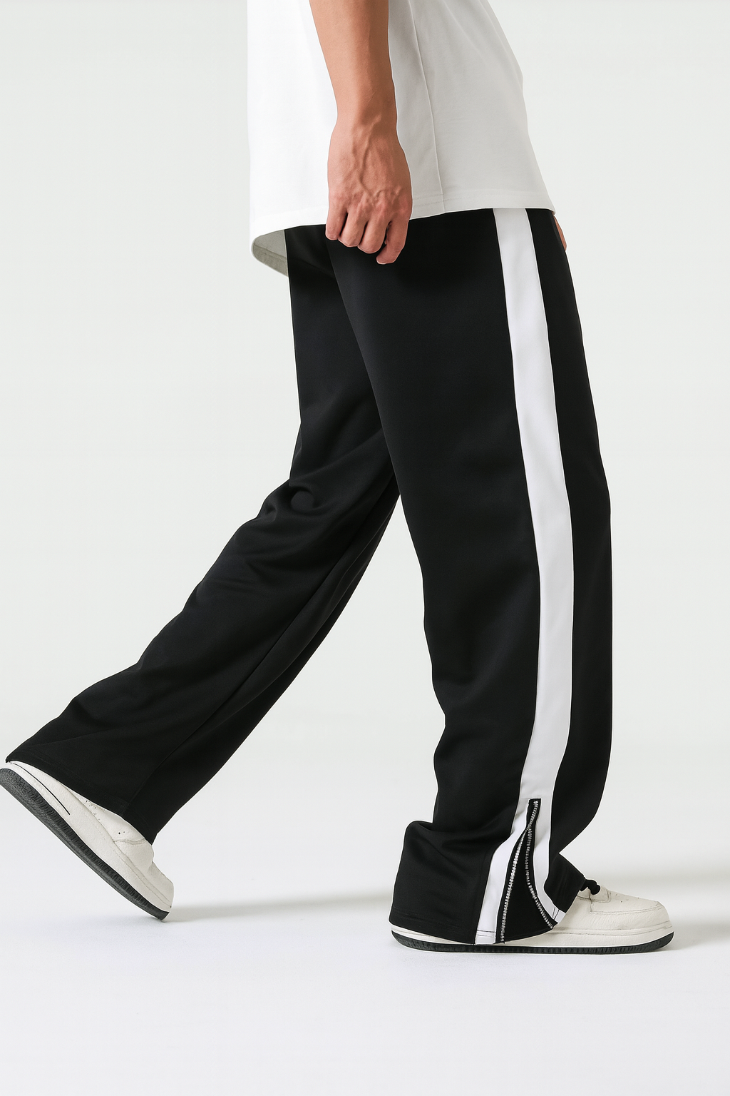 URBXN Black & White Side Stripe Track Pants – Wide Leg Streetwear Joggers