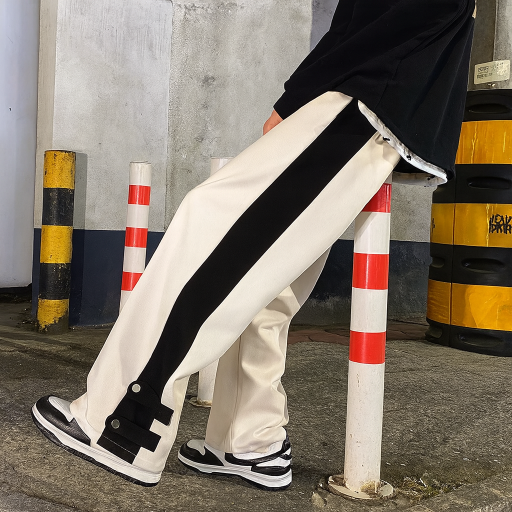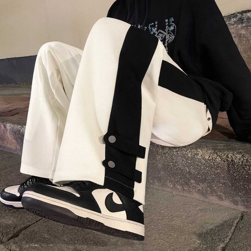 URBXN Black & White Snap Track Pants – Streetwear Wide Leg Joggers