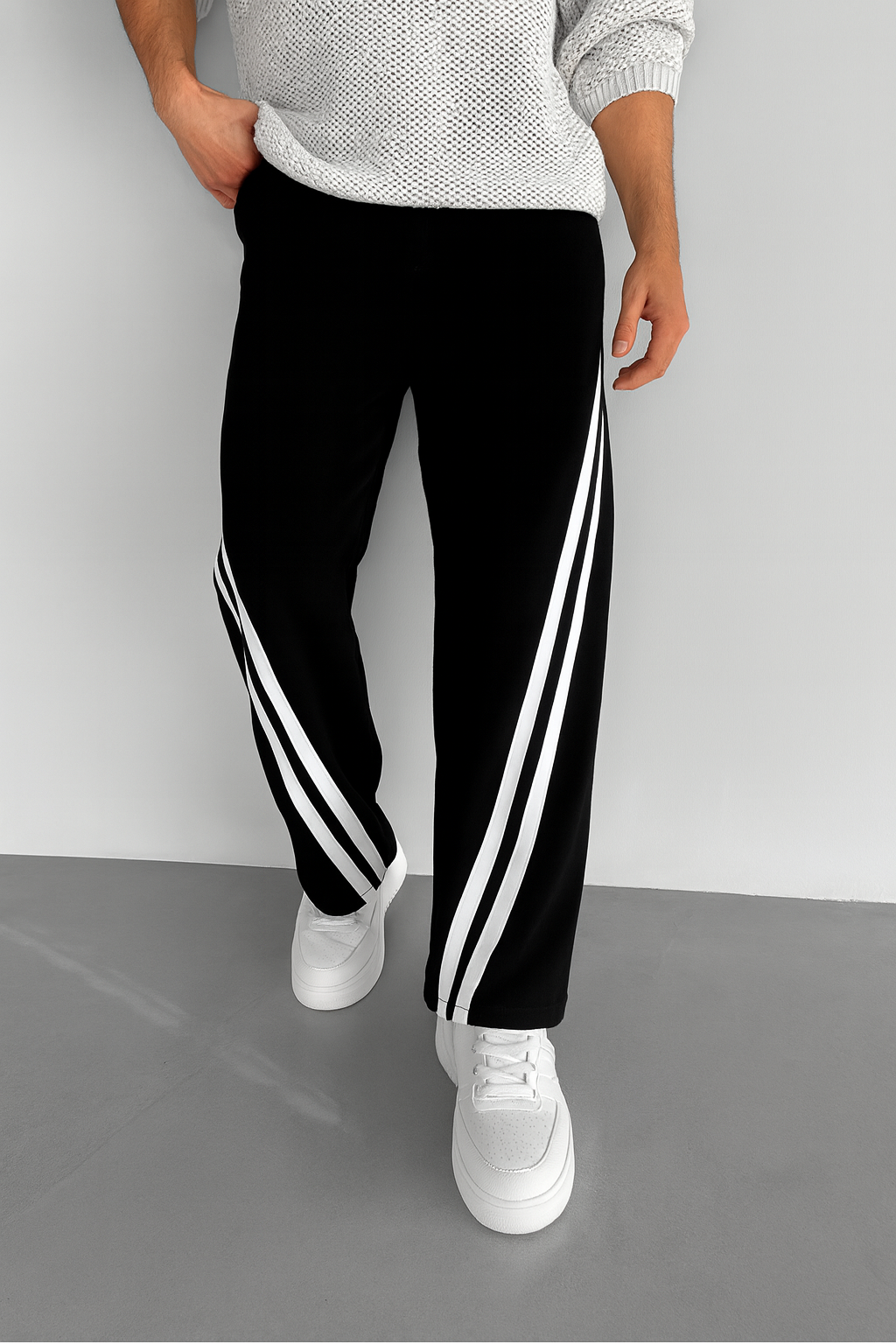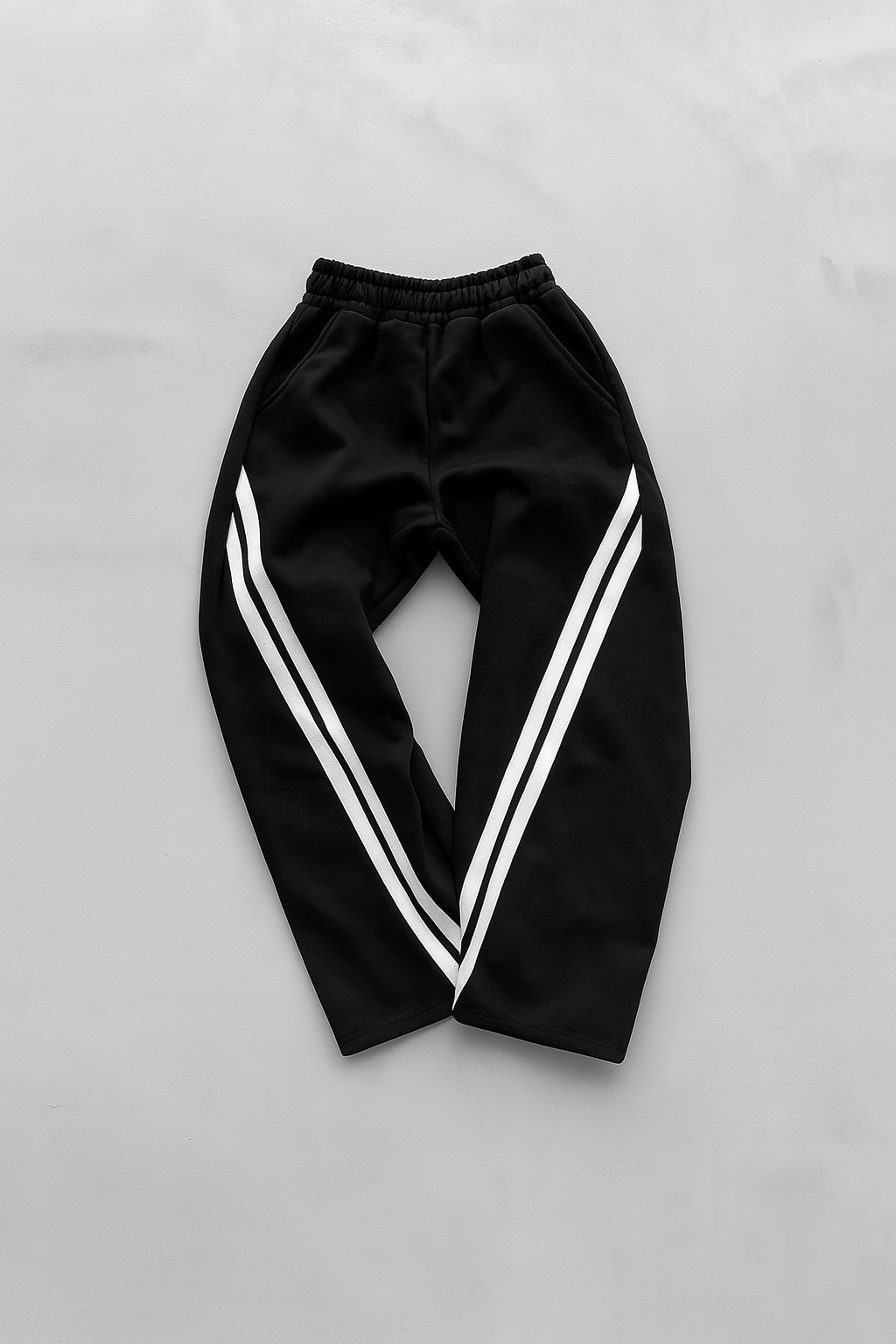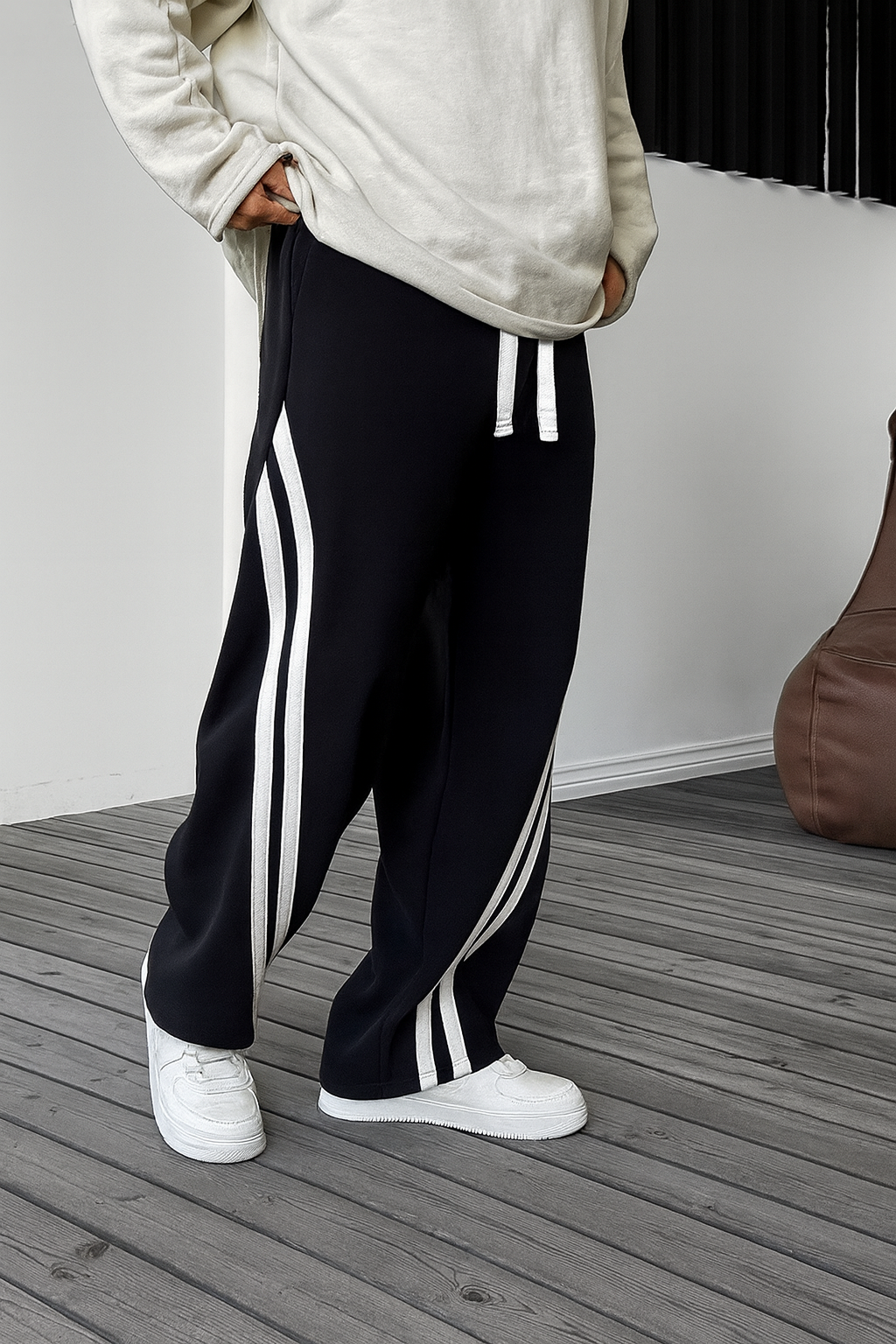 URBXN Black & White V-Stripe Track Pants – Streetwear Wide Leg Joggers