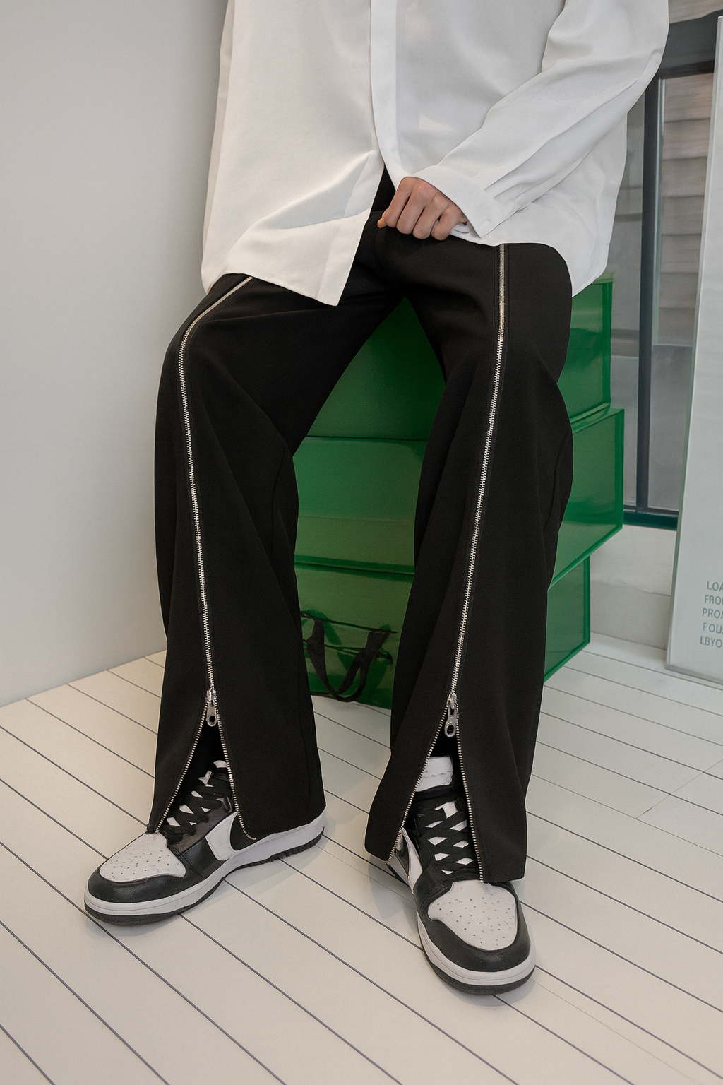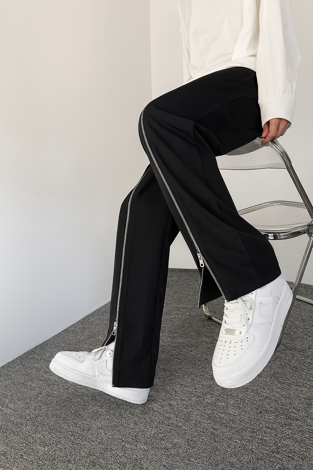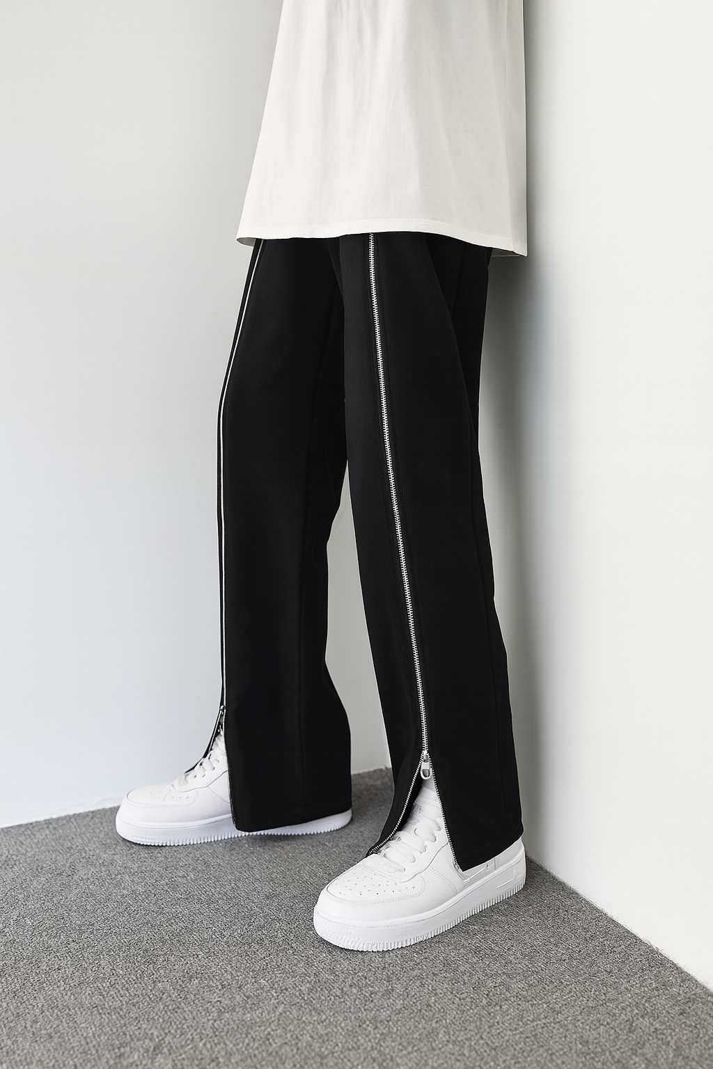 URBXN Black Zipper Split Flare Pants – Slim Fit Streetwear Trousers