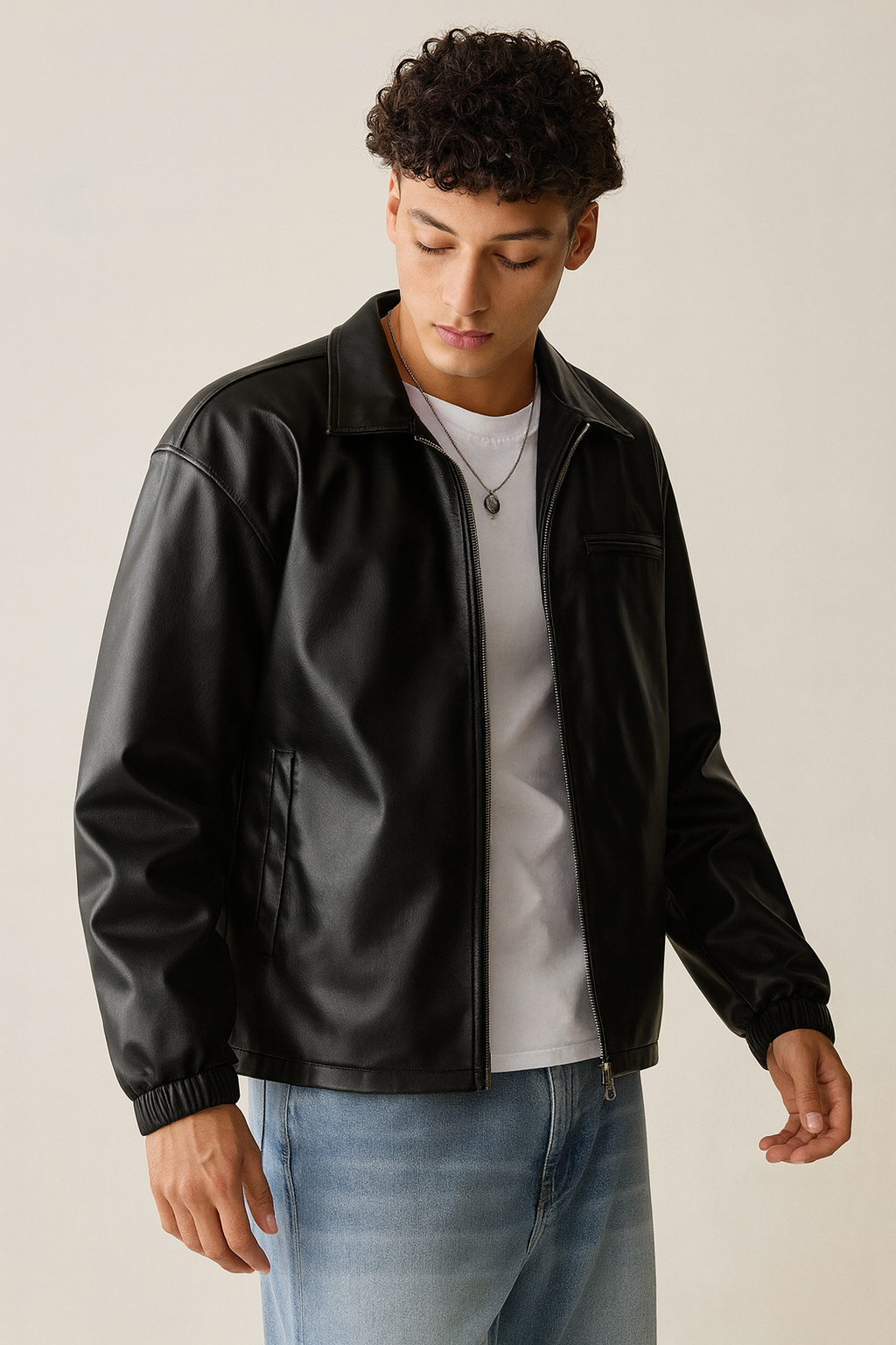 Classic Black Leather Bomber Jacket – Men’s Streetwear Outerwear