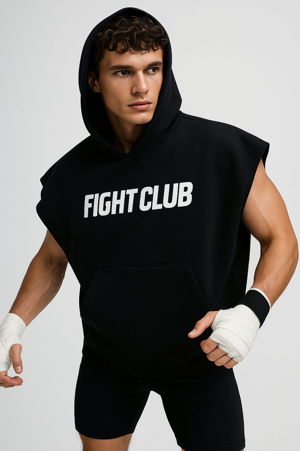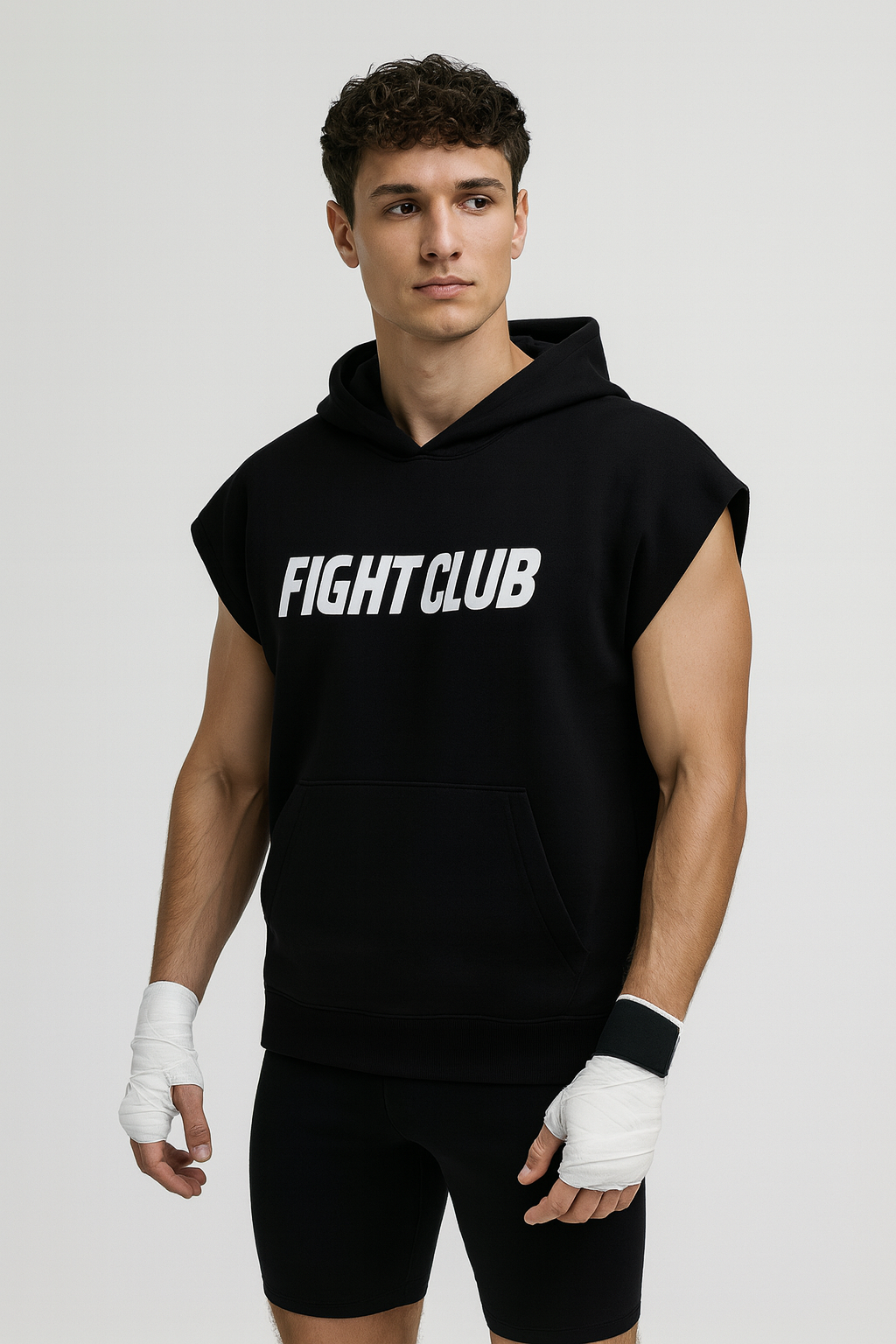 Fight Club Sleeveless Hoodie – Black Muscle Tank for Training & Streetwear