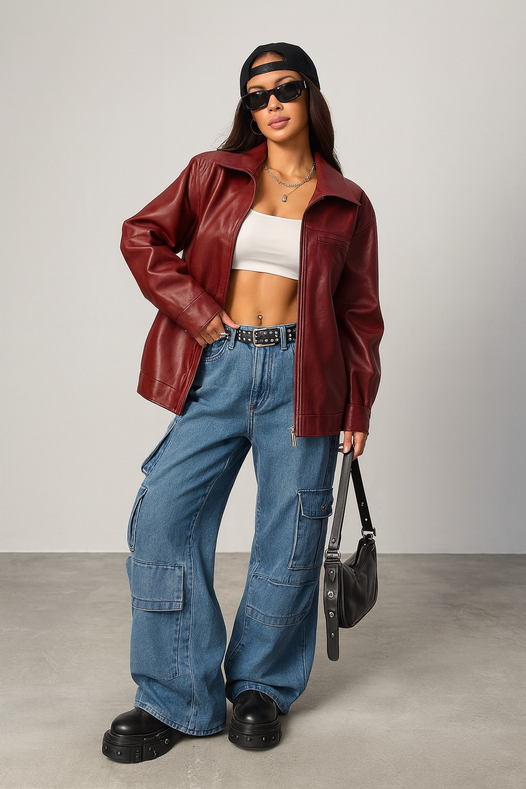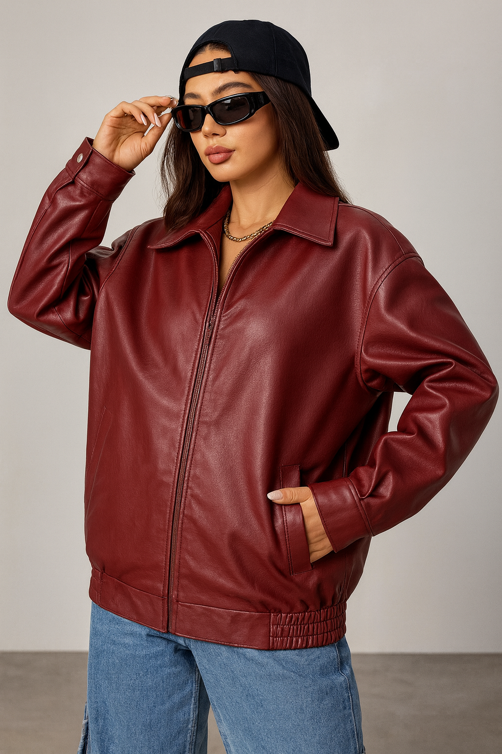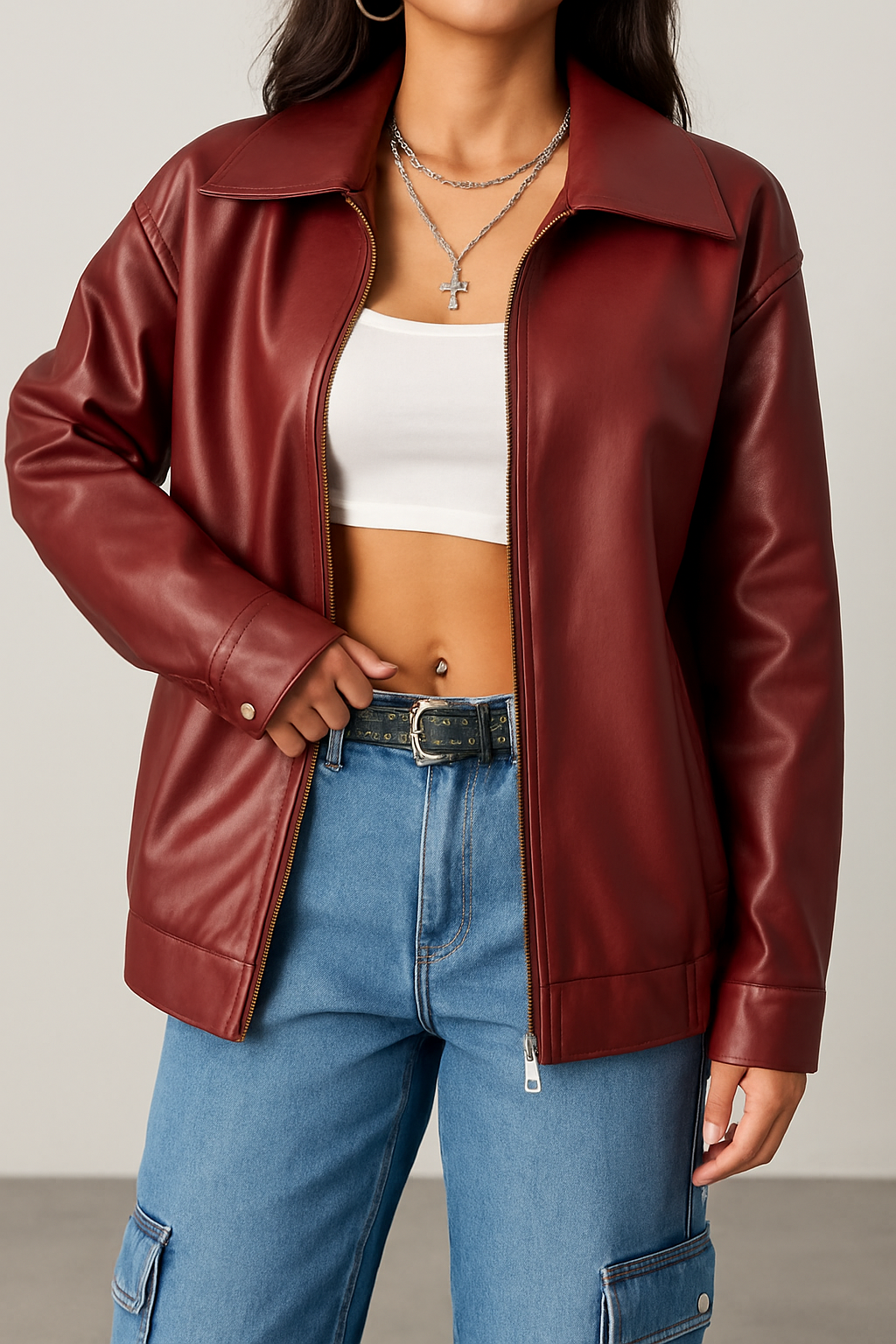 Make a bold statement with the Oversized Red Leather Jacket, crafted for those who love effortless streetwear style with a vintage edge. Designed for comfort and attitude, this jacket is perfect for layering, styling, and turning heads.