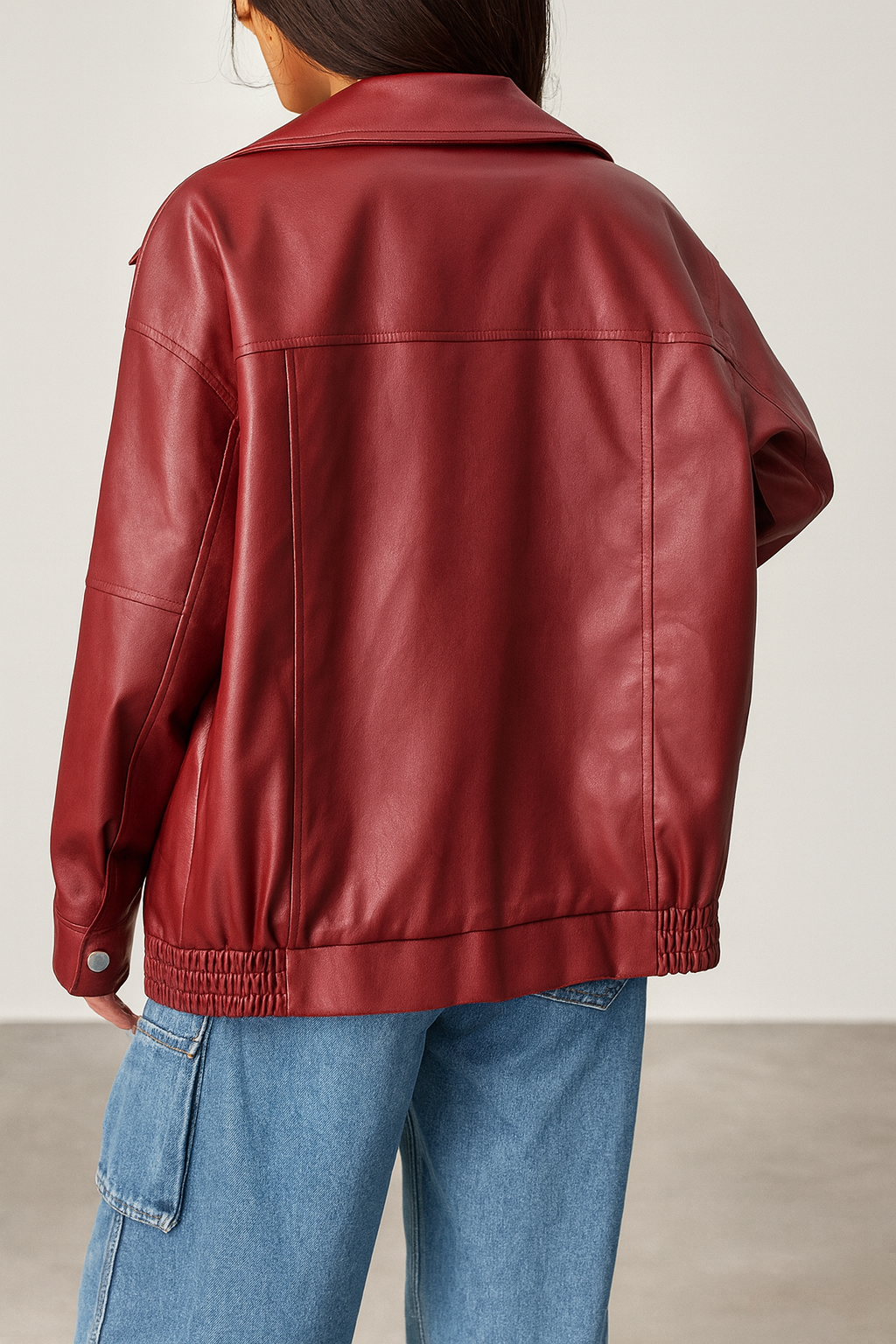 Oversized Red Leather Jacket – Vintage Streetwear Unisex Outerwear