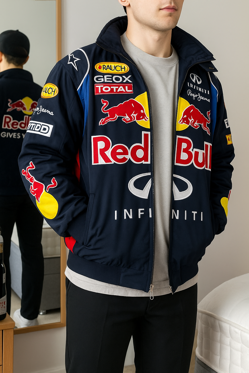 ▪ Iconic Red Bull Branding – Embroidered logos & patches for authentic motorsport vibes